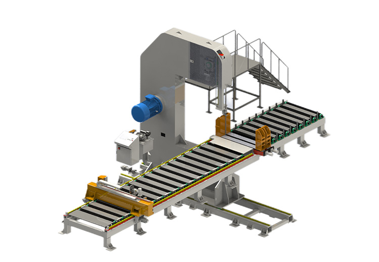 采用双气压,整体压料罩形式动作,气压由上往下压料,提高锯切安全性,有利于集中处理锯屑